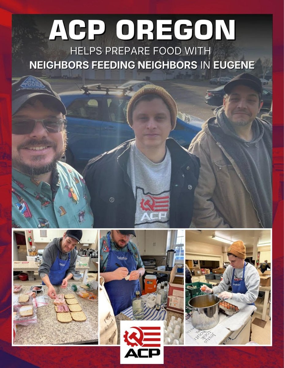 On January 4th 2026, members of the Oregon chapter of the American Communist Party continued their work with the Burrito Brigade organization to distribute over 300 burritos to hungry people in Eugene Oregon. The American Communist Party and its Oregon chapter are committed to